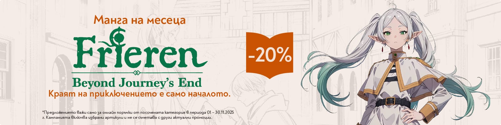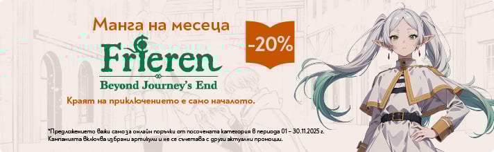 През ноември Frieren: Beyond Journey’s End е Манга на месеца в Orange – възползвай се от специалната 20% отстъпка и се потопи в едно незабравимо и красиво пътешествие отвъд края на приключението.