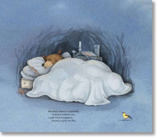 „Гравет взема една добре позната тема и я поднася с лекота, майсторство и хумор, като кани читателя да стане съучастник в историята. Посветени сме в тайната заедно с авторката; Мечокът не вижда малкото птиче, но ние го виждаме. А после идва удовлетворяващото разкритие – и забавният обрат. Илюстрациите изпълват всеки разтвор с цвят, индивидуалност и звук. (...) Наслаждаваме се на разлистването още от първия миг, когато книгата ни покани в гората и ни отведе до пещерата на Мечо, до самия край, докато тихичко се изнизваме покрай заспалите животни.”