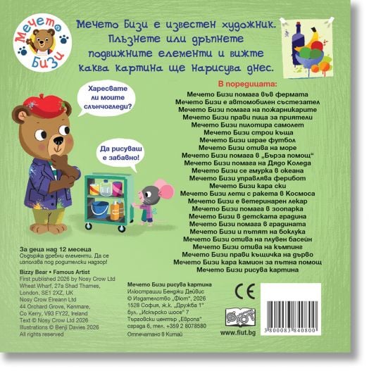Цветните илюстрации и подвижните елементи правят всяка страница интересна и занимателна, а срещата с талантливото мече ще донесе много усмивки на малките любители на книжките.