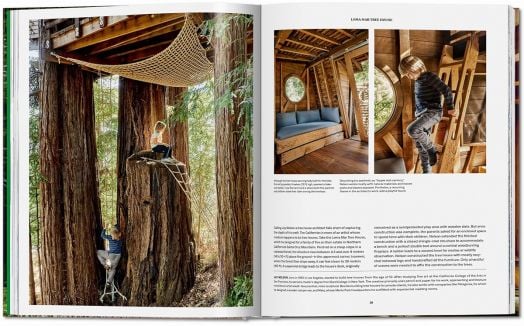 So, climb up and explore 62 elaborate tree houses from around the world, each with its own fascinating story. With no single blueprint, they take many forms—some are anchored within towering branches, others mimic the shapes of trees, some shelter in the foliage without touching a trunk. But all have the same goal: to bring us closer to nature.