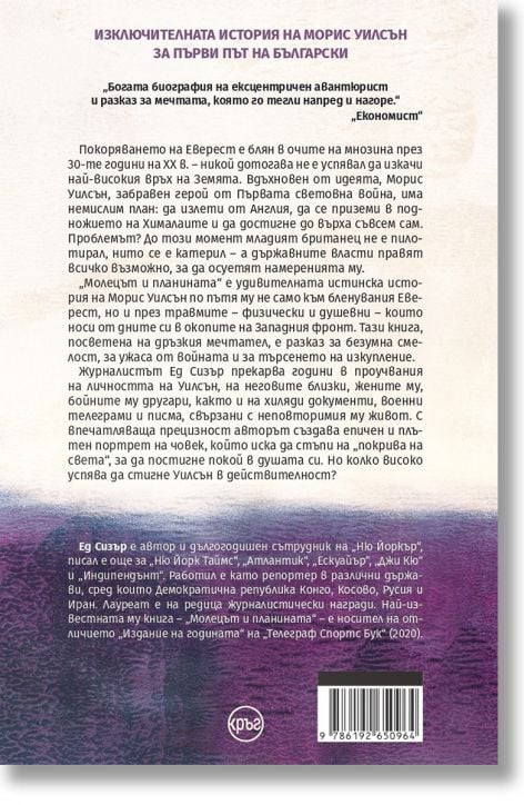 „Молецът и планината“ е удивителната истинска история на Морис Уилсън по пътя му не само към бленувания Еверест, но и през травмите – физически и душевни – които носи от дните си в окопите на Западния фронт.