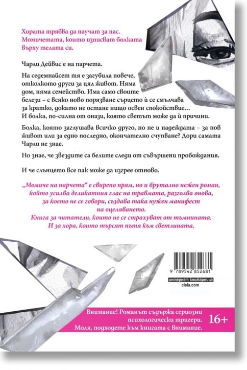 На седемнайсет тя е загубила повече, отколкото други за цял живот. Няма дом, няма семейство. Има само своите белези – с всяко ново порязване сърцето ѝ се смълчава за кратко, докато не остане нищо освен спокойствие… И болка, по-силна от онази, която светът може да ѝ причини.