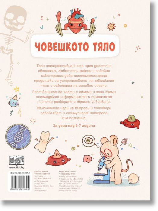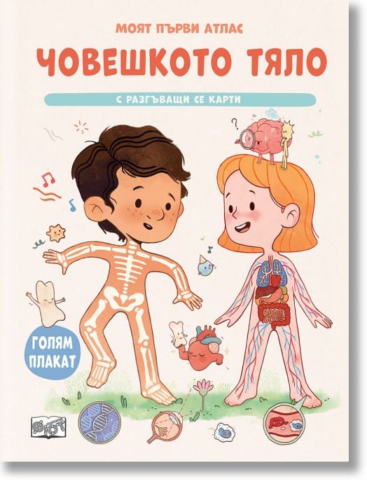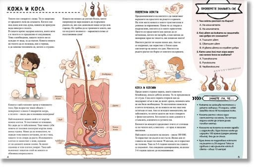 Чрез достъпни обяснения, любопитни факти и забавни илюстрации, децата лесно навлизат в света на анатомията. Специалните разгъващи се карти с големи и ясни схеми онагледяват информацията и подпомагат нейното по-добро разбиране и трайно усвояване.