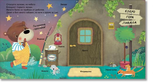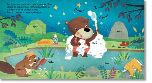 На страниците на „Моята първа книга с панорамни илюстрации: Готови за сън“ ще видите какво прави мечето Били, преди да се сгуши уютно и да заспи.