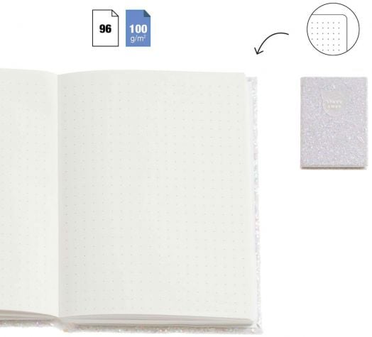 Блестящ тефтер Miquelrius Back2Fun Spark Away с твърди брокатени корици в лилаво, който може да побере в себе си всички ваши идеи