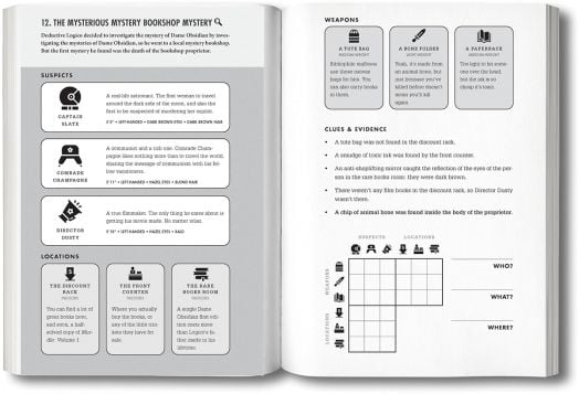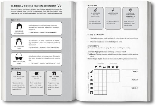 Join Deductive Logico and investigate murders most foul in Murdle: Volume 1. The first of their kind, these humorous mini-mystery puzzles challenge you to find whodunit, how, where, and why. Examine the clues, interview the witnesses, and use the power of deduction to complete the grid and catch the culprit. Together, you’ll uncover a buried secret beneath all of the murders and a message that can only be decrypted when you’ve solved them all.