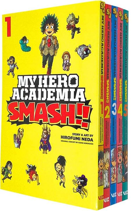 The superpowered society of My Hero Academia takes a hilarious turn in this reimagining of the best-selling series! Join Midoriya, All Might and all the aspiring heroes of U.A. High.