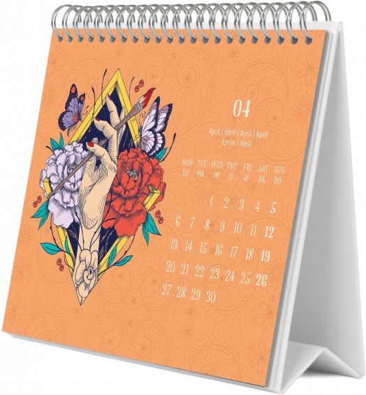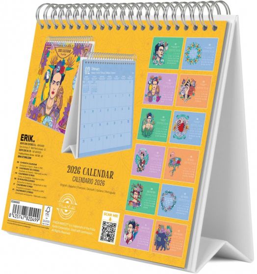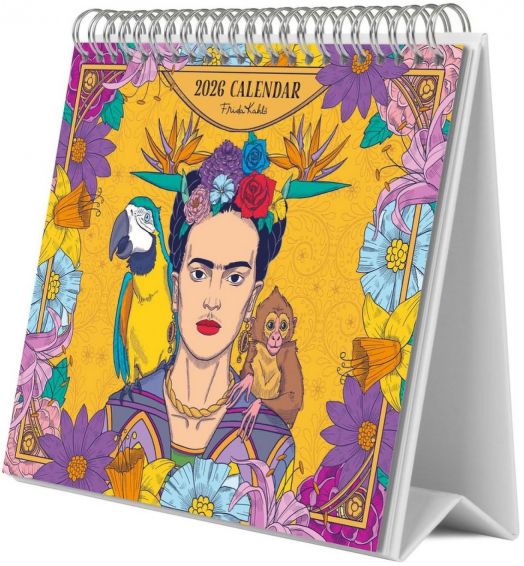 Настолен календар със спирала за 2026 година с 12 изображения, вдъхновени от творчеството на мексиканската художничка Фрида Кало.