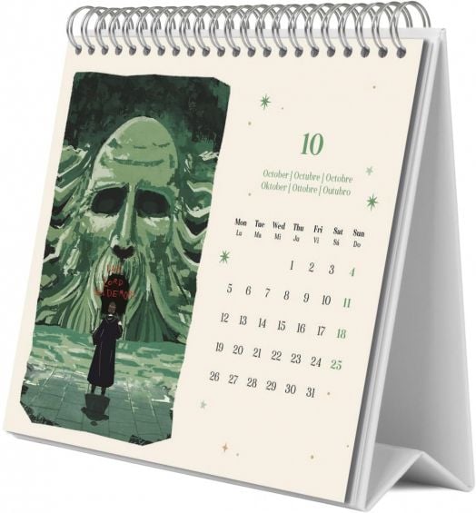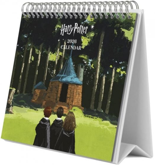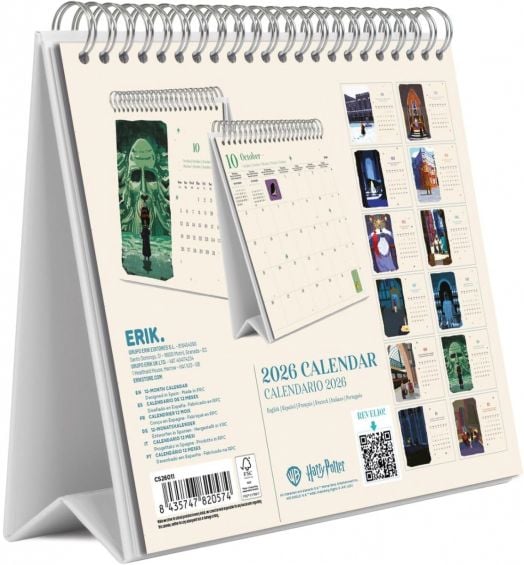 Настолен календар със спирала за 2026 година с 12 изображения, вдъхновени от магическия свят на Хари Потър.