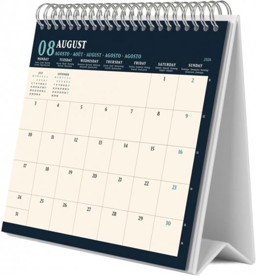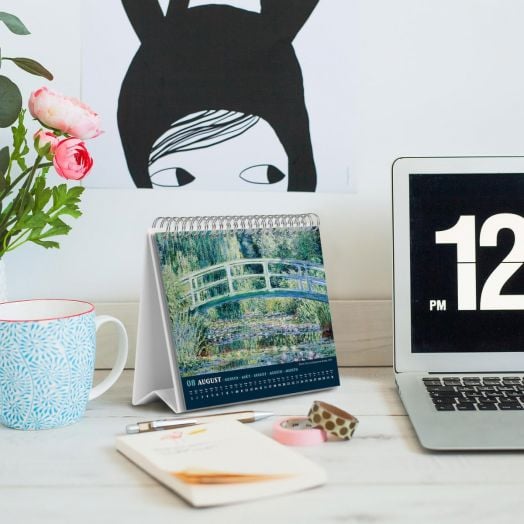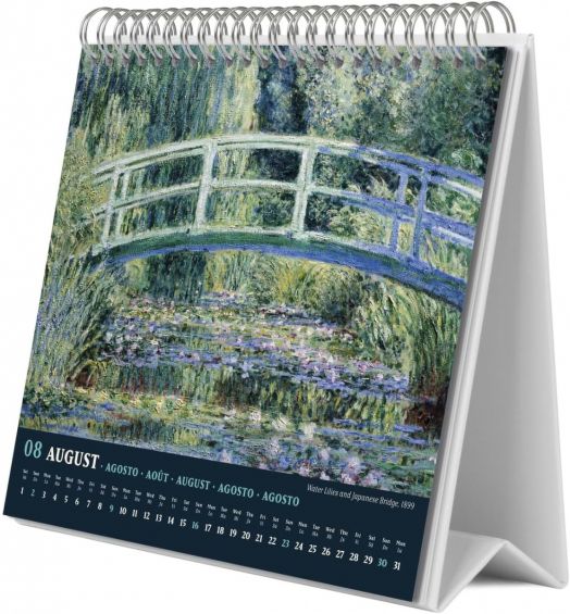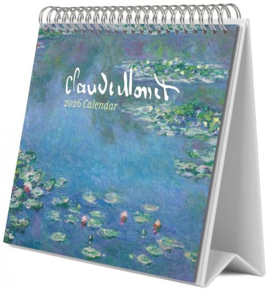 Настолен календар със спирала за 2026 година с 12 изображения, вдъхновени от творчеството на френския художник Клод Моне.