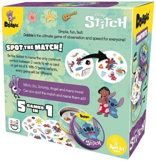 Всяка от картите е пълна с цветни илюстрации на Стич, Лило и техните приятели. Между всяка двойка карти има само един общ символ – открий го светкавично и спечели рунда!