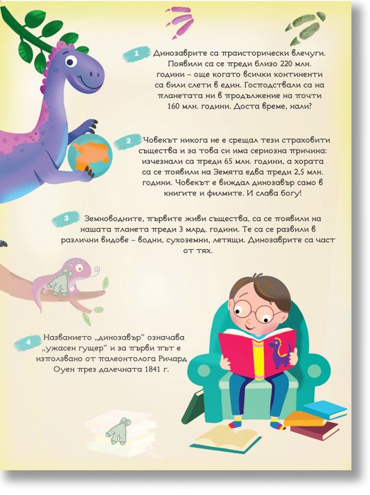 С тази книжка ще откриеш 100 любопитни факта за удивителните динозаври – как са изглеждали, как са живели и какво ги е направило толкова специални.