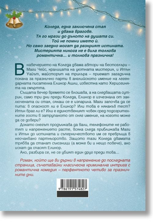 Докато снегът продължава да вали, телефоните не работят и напрежението расте, всяка следа приближава Маги и Итън до истината и съперничеството им се превръща в неочаквано партньорство. Защото тази Коледа двамата трябва да станат съюзници (а може би и нещо повече), ако искат да спасят Елинор.