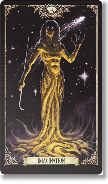 ORIGINAL ART: The 78 cards and 128-page booklet feature intricate Necronomicon-inspired illustrations of Cthulhu, Yog-Sothoth, and other dark denizens of Lovecraft’s universe.