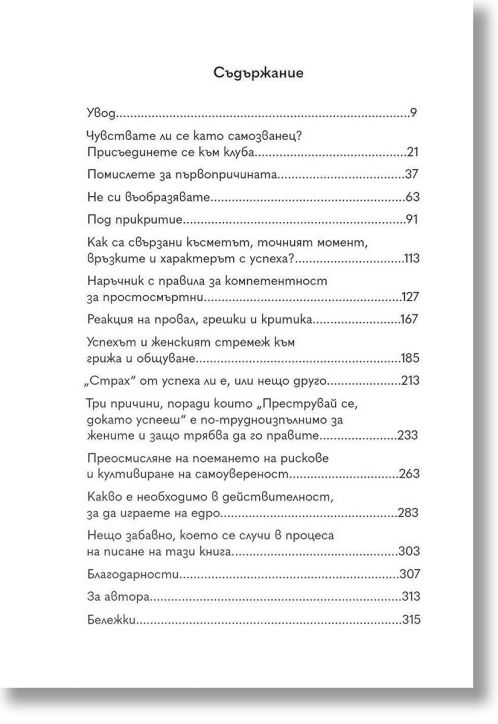 С помощта на задълбочен анализ, практични съвети и реални примери д-р Валъри Йънг – пионер и водещ специалист по темата за синдрома на самозванеца – показва защо това усещане може да се появи на всяко ниво – от гимназията до върха на кариерата – и как да го разпознаем в собствения си живот.