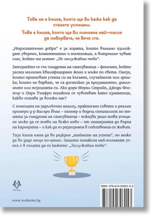 „Недостатъчно добри“ е за хората, които външно изглеждат уверени, компетентни и постигащи, а вътрешно чуват глас, който им шепне: „Не заслужаваш това“.