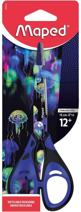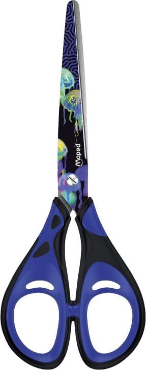 Ножица Maped Deepsea Paradise със страхотен дизайн и 2D оформени пръстени за захващане, осигуряващи комфорт и сигурно захващане на ръцете.