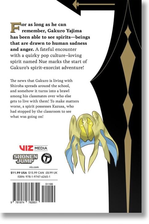For as long as he can remember, Gakuro Yajima’s been able to see spirits—beings that are drawn to human sadness and anger. A fateful encounter with a quirky pop culture–loving spirit named Nue marks the start of Gakuro’s spirit-exorcist adventure!