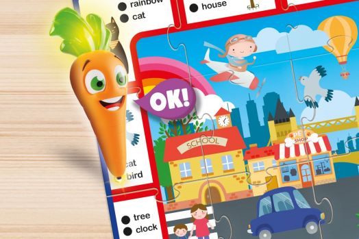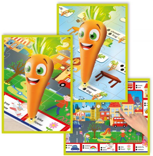 С помощта на говорещата писалка децата отговарят на въпроси, посочвайки правилните изображения. Писалката разпознава верните отговори и ги насърчава със звукови сигнали, което прави ученето самостоятелно, мотивиращо и интерактивно. Играта може да се използва както за индивидуални занимания, така и за забавление с приятели.