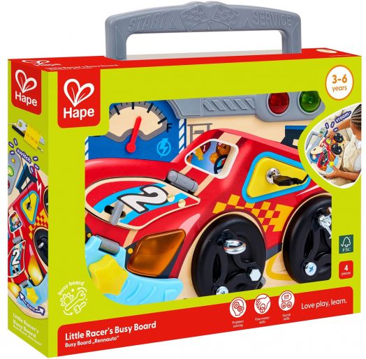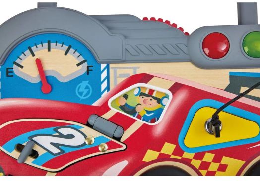 Развивайте фината моторика на детето дори в движение с тази преносима дъска с активности, създадена специално за малките любители на състезания. Забавна и практична, тя насърчава ученето чрез игра.