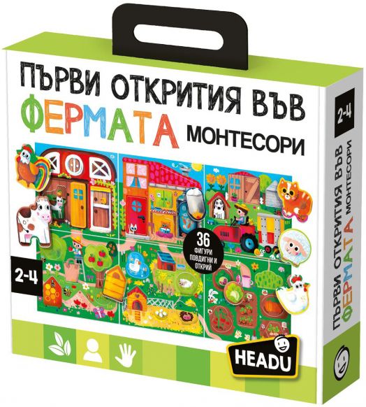 Образователната игра Headu по метода Монтесори е създадена за любопитни деца над 2 години и ги въвежда в света на фермата по интерактивен и увлекателен начин. Чрез игра и откриване тя подпомага развитието на наблюдателността, логическото мислене и първите познания за животните и природната среда.