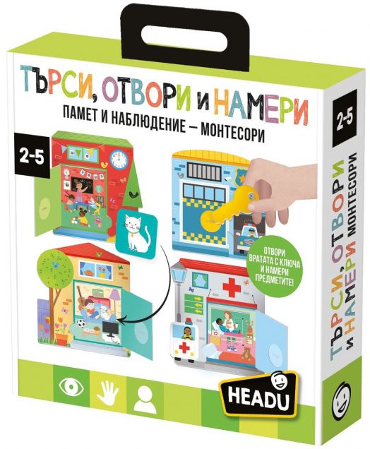 Образователната игра Headu по метода Монтесори предлага интерактивен и увлекателен начин най-малките да развиват паметта, наблюдателността и фината моторика. Подходяща за деца над 2 години, играта превръща ученето в забавно приключение с тематични градски сгради и специален ключ за отключване.