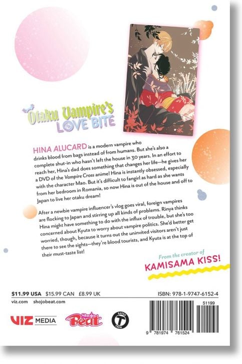 After a newbie vampire influencer’s vlog goes viral, foreign vampires are flocking to Japan and stirring up all kinds of problems. Rinya thinks Hina might have something to do with the influx of trouble, but she’s too concerned about Kyuta to worry about vampire politics. She’d better get worried, though, because it turns out the uninvited visitors aren’t just there to see the sights—they’re blood tourists, and Kyuta is at the top of their must-taste list!