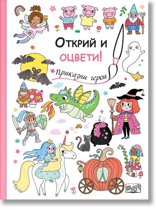 „Открий и оцвети! Приказни Герои“ е забавна книга за оцветяване.