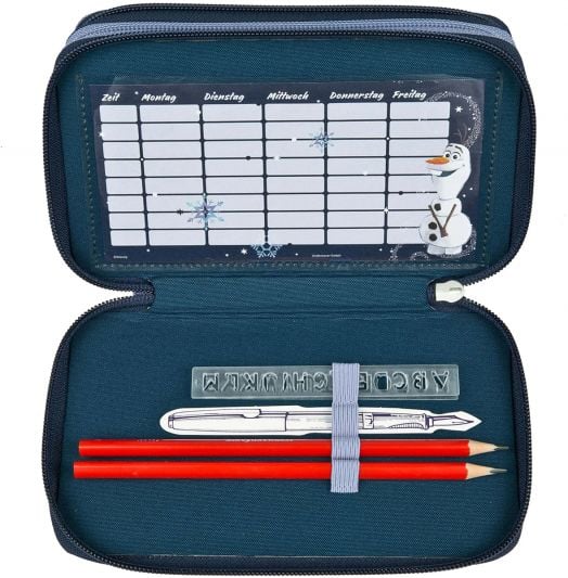 Пълен ученически несесер с любимите герои Елза и Олаф от Замръзналото кралство.