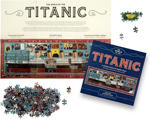 The World of the Titanic е впечатляващ панорамен пъзел от 1000 части, който Ви отвежда на пътешествение през историята на знаменателния океански лайнер RMS Titanic - от неговия дизайн и строеж до драматичната му съдба през 1912 г. Чрез подробна илюстрация в три части можете да сглобите прочутия кораб, да откривате сцени от борда и да научите повече за хората, които са пътували на него и за живота на различните класове на борда.
