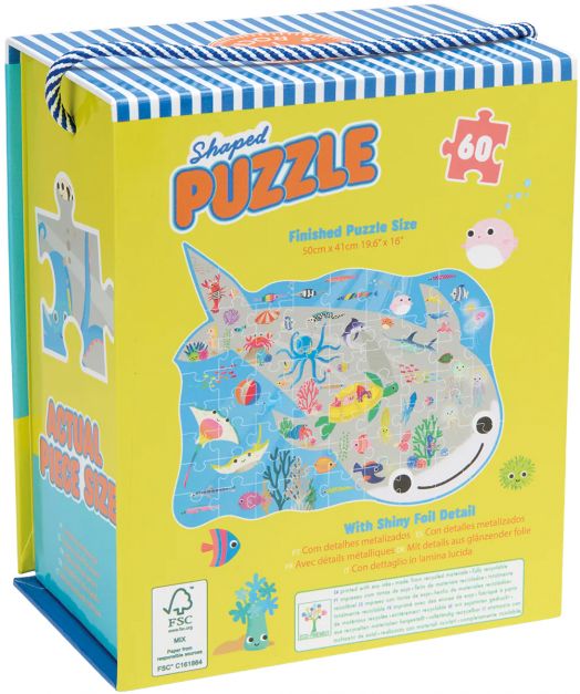 Забавен и ярък пъзел от 60 части в нестандартна форма, с красиви фолирани детайли. Комплектът е опакован в здрава кутия с магнитно закопчаване и удобна дръжка за носене. Перфектен за деца над 5 години, които търсят по-предизвикателен пъзел и много забавление.