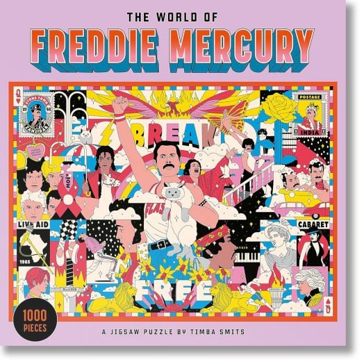 The World of Freddie Mercury е впечатляващ пъзел от 1000 части, посветен на легендарния музикант и неговия невероятен живот и кариера с групата Queen. Пъзелът представя богата и цветна илюстрация, изпълнена с детайлни, вдъхновени от живота, песните и сценичния стил на една от най-големите рок икони.
