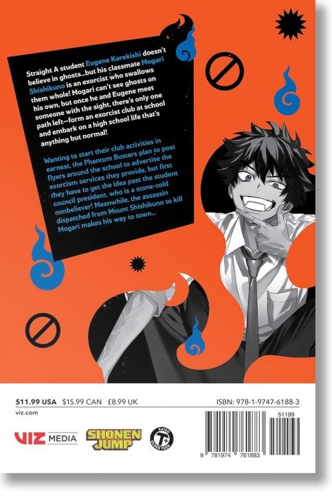Straight A student Eugene Korekishi doesn’t believe in ghosts…but his classmate Mogari Shishikuno is an exorcist who swallows them whole! Mogari can’t see ghosts on his own, but once he and Eugene meet someone with the sight, there’s only one path left—form an exorcist club at school and embark on anything but a normal high school life!