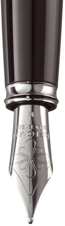Корпусът на писалката е покрит с черен лак, а писецът е фино изваян от неръждаема стомана.