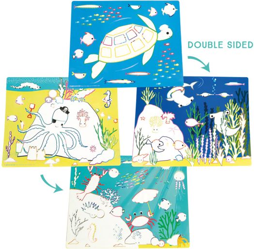В комплекта ще откриеш 2 двустранни подложки, събрани в удобен калъф. Без бъркотия и с много забавление!