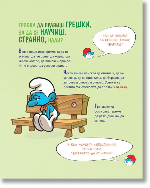„Смърфът, който се боеше от неуспехи“ е част от обичаната поредица „Порасни със смърфовете“ и помага на децата: