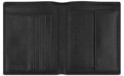 Вертикален, стилен и функционален мъжки портфейл Bugatti от серията Black Magic, изработен от 100% телешка кожа.