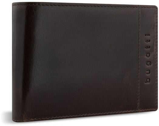 Практичен и елегантен кафяв мъжки портфейл Bugatti от серията Romano, изработен от висококачествена 100% телешка кожа с фин винтидж ефект.