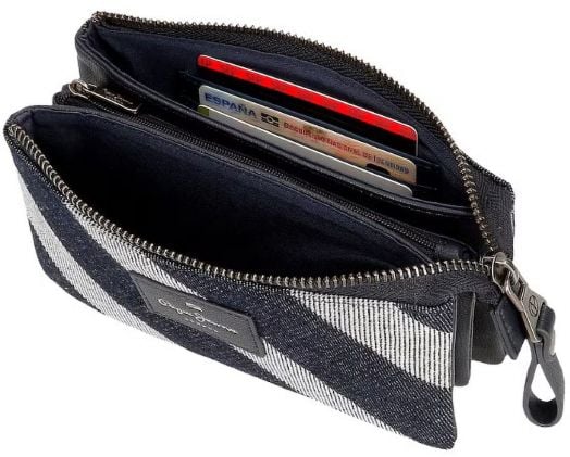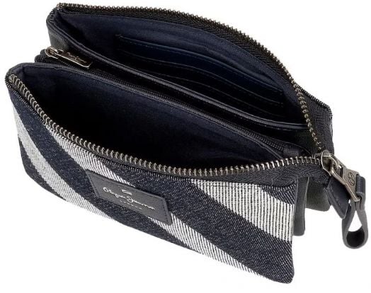 Портмоне-несесер от серията Pepe Jeans Celine Denim на Joumma Bags на тъмносини и светлосиви райета.