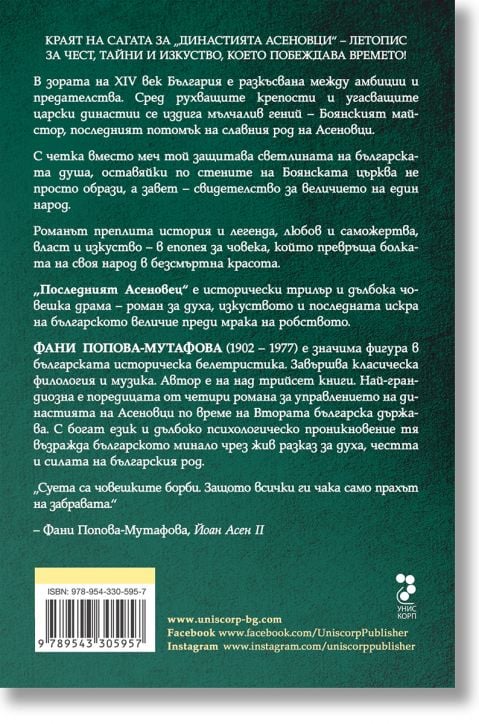 „Последният Асеновец“ е исторически трилър и дълбока човешка драма – роман за духа, изкуството и последната искра на българското величие преди мрака на робството.