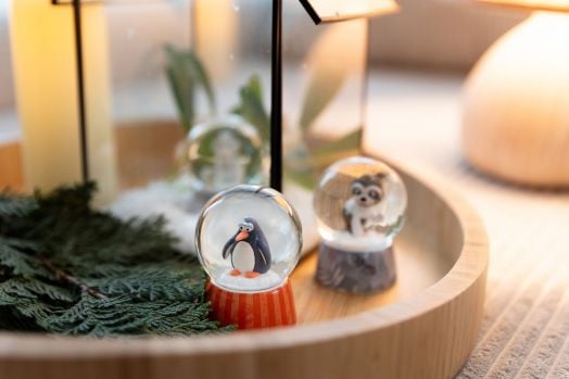 Пингвинът Jorge е напълно в стихията си - щом раздвижиш преспапието, белите снежинки започват да танцуват около него.