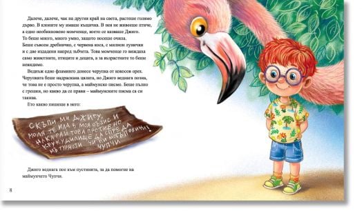 Много, ама много далеч оттук, зад един ей толкова голям океан, през сума ти планини, гори, градове и села, сателитни антени, кучета и разбира се – деца, растеше голямо дърво. Дървото беше хем обикновено, хем необикновено. Обикновено – защото на него имаше обикновена къщичка за птици. А необикновено – защото в къщичката не живееше птиче, а момченце.