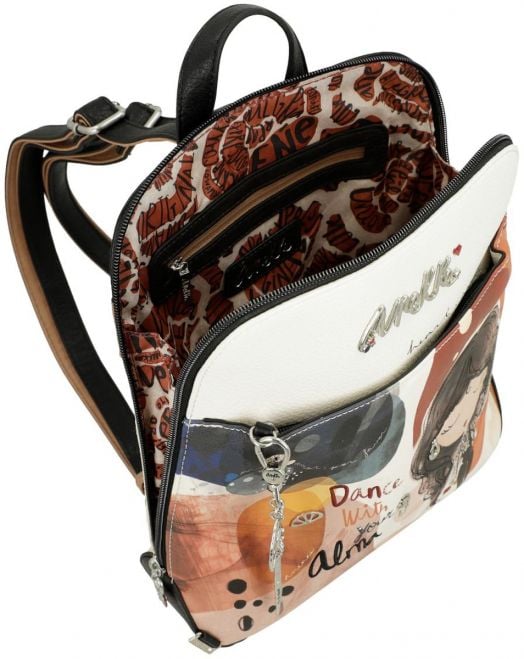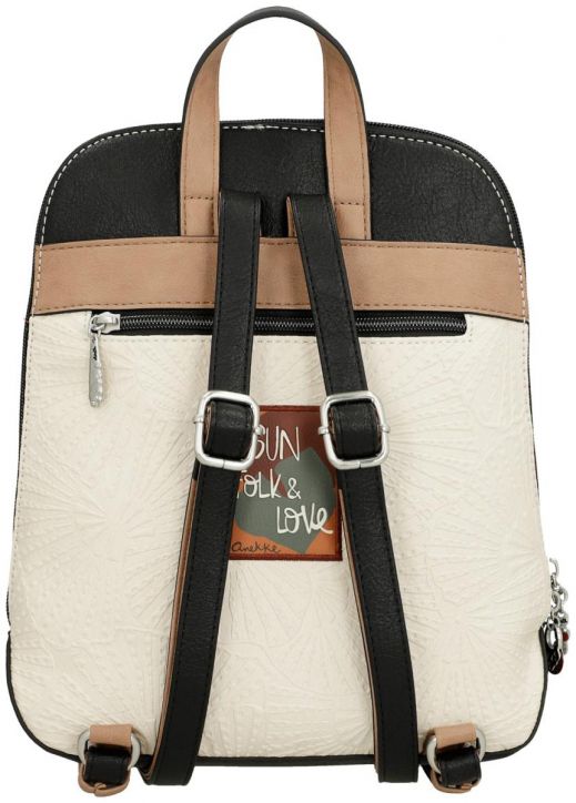 Тази дамска раница за свободното време съчетава стил и практичност. Основното отделение се затваря с цип, а вътрешността е подплатена и разполага с удобни джобове за по-добра организация на вещите. Раницата има и допълнителни джобове отпред и на гърба.