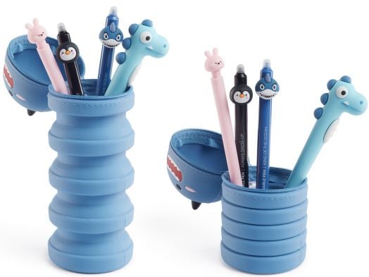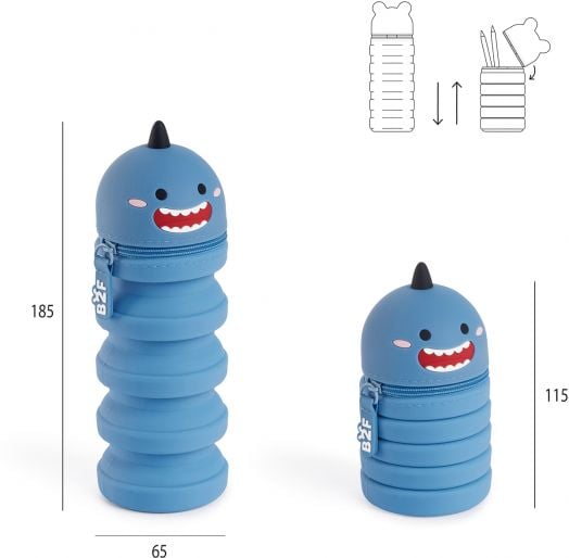 Изработен от висококачествен, мек и издръжлив силикон, той лесно променя формата си – стои стабилно изправен на бюрото или се прибира компактно, когато ви трябва място в раницата. Забавният дизайн с акула носи настроение и превръща всяко учене в малко приключение.