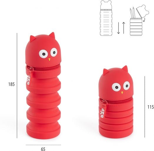 Изработен от висококачествен, мек и издръжлив силикон, той лесно променя формата си – стои стабилно изправен на бюрото или се прибира компактно, когато ви трябва място в раницата. Забавният дизайн с бухал носи настроение и превръща всяко учене в малко приключение.