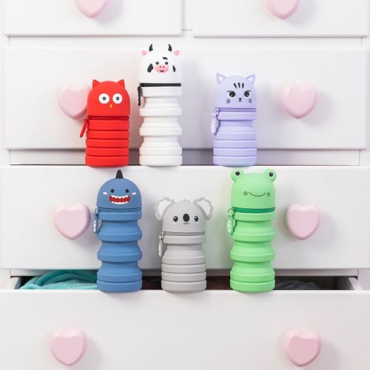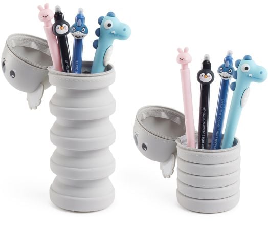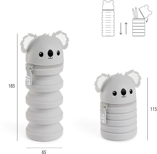 Изработен от висококачествен, мек и издръжлив силикон, той лесно променя формата си – стои стабилно изправен на бюрото или се прибира компактно, когато ви трябва място в раницата. Забавният дизайн с коала носи настроение и превръща всяко учене в малко приключение.
