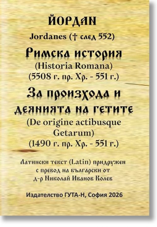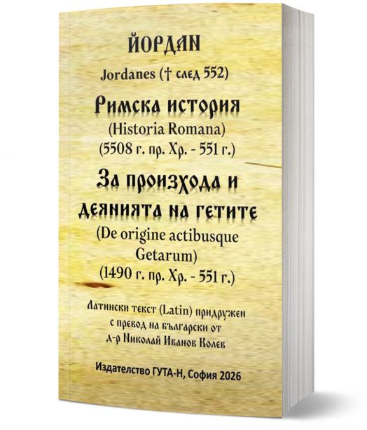 в ръцете си държиш забележителните книги Римска история и За произхода и деянията на гетите написани от Йордан преди 552 година с текст на латински и преводът му на български. Текстът на латински на Romana е публикуван в