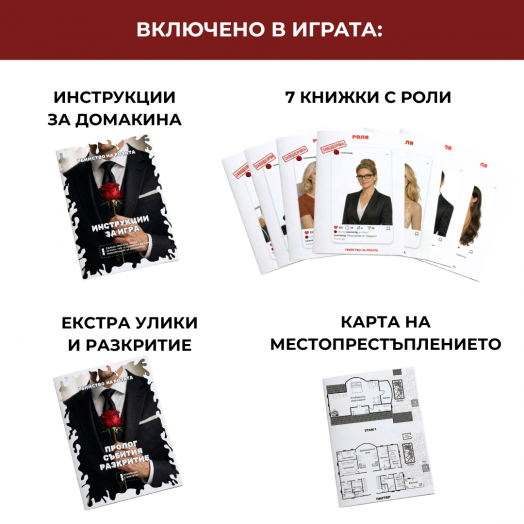 - 7 книжки с роли (всеки играч има своя лична история);