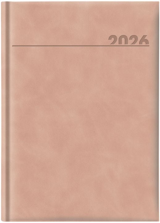 Розов тефтер-органайзер Lediberg Chia с мултинационално тяло (осем езика, включително български) за 2026 година в A5 размер.