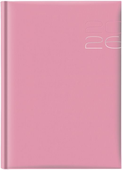 Розов тефтер-органайзер Lediberg Matra с мултинационално тяло (осем езика, включително български) за 2026 година в A5 размер.
